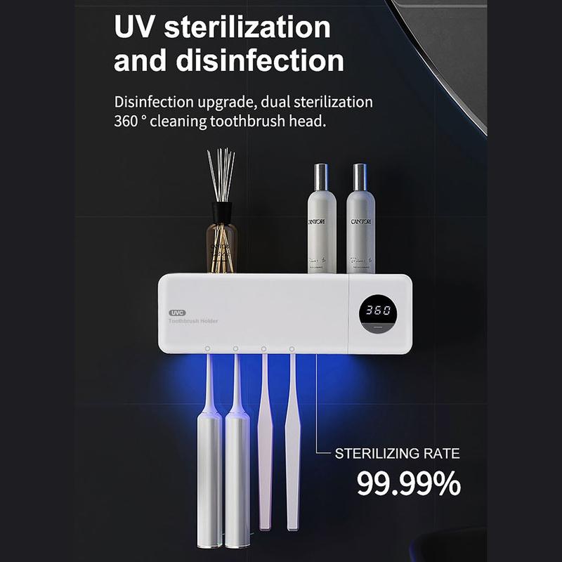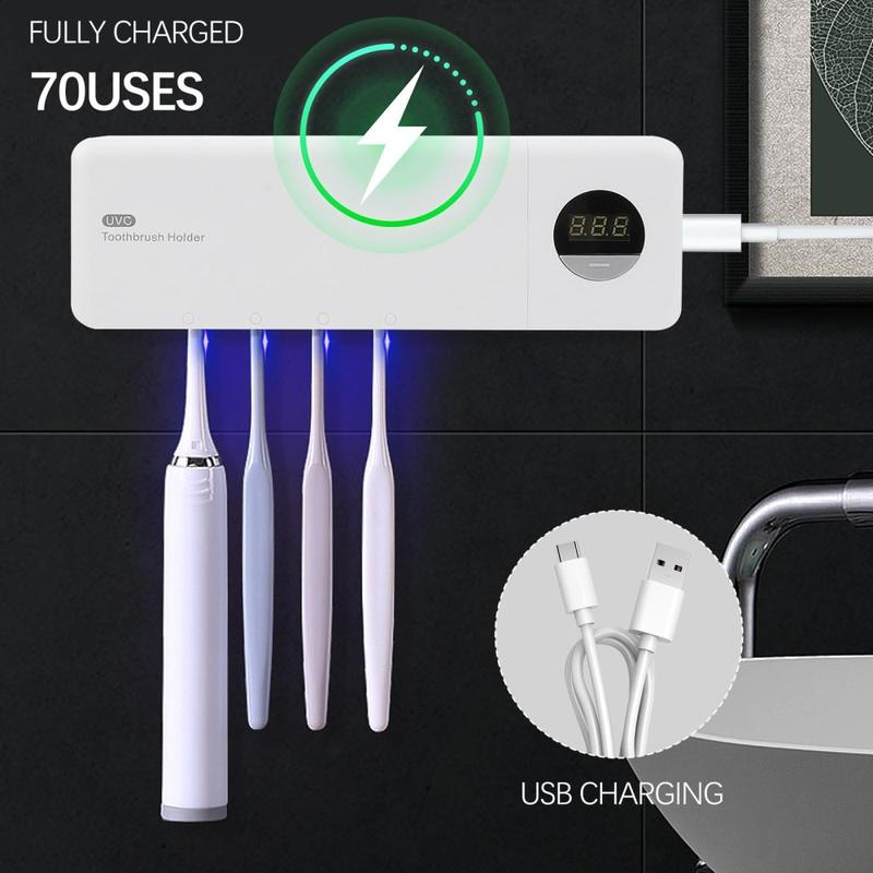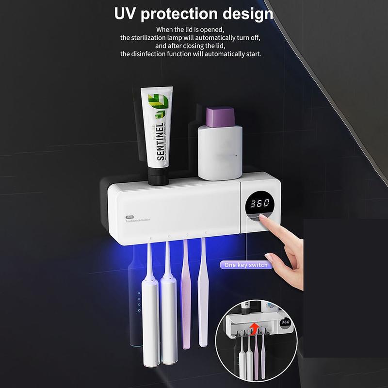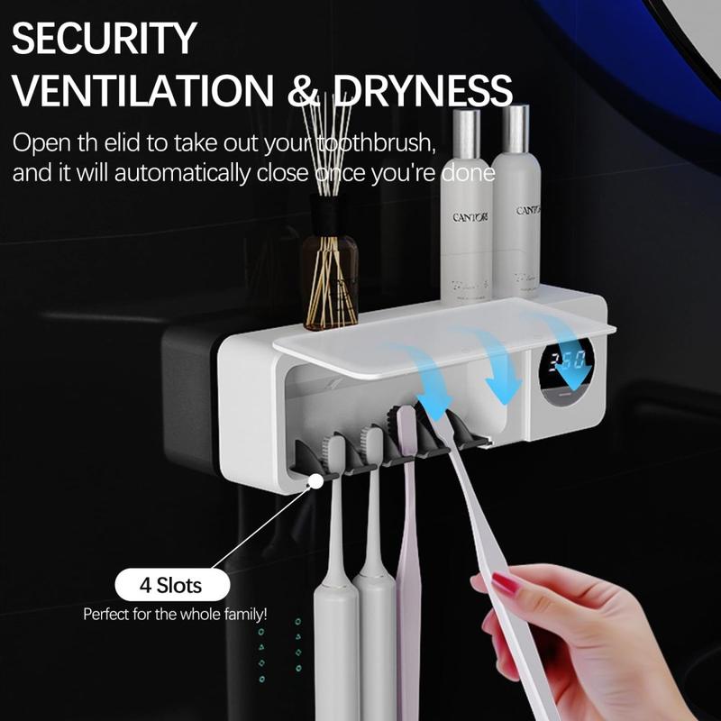 • Zahnbürsten-Sanitizer UV-Sterilisator - Wandmontierter Zahnbürstenhalter mit automatischem Sensor und Digitalanzeige