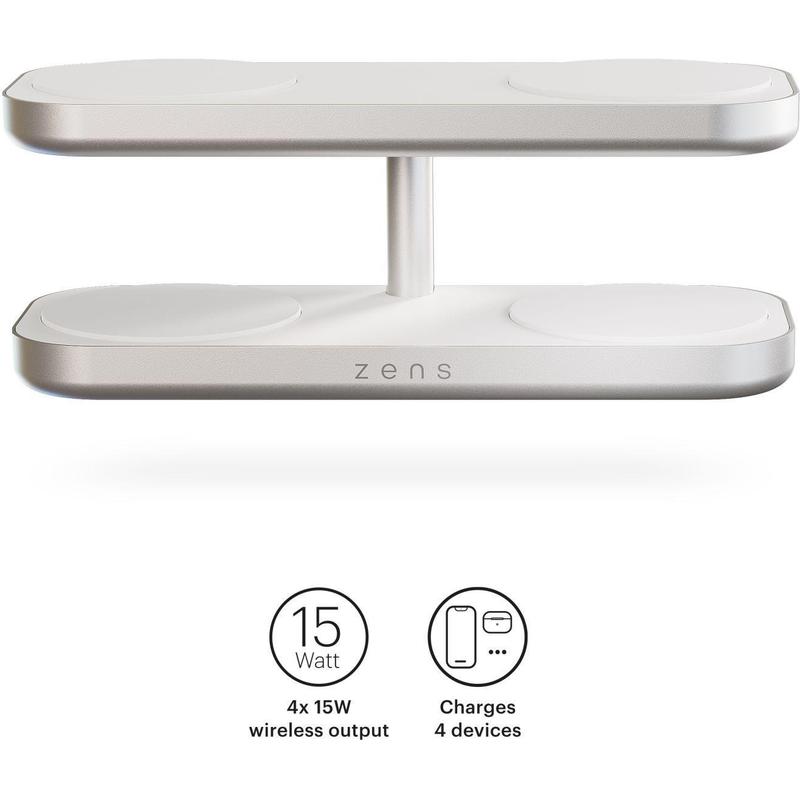 Zens Aluminium Quattro Wireless Charger Pro 4 mit 65W Power Adapter für iPhone 12/13/14/15/16/17/Air, AirPods - MagSafe Kompatibel, Qi2, 4x 15W