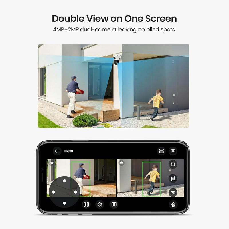 ZOSI C298SE 6MP Dual-Objektiv Schwenk-Neige-Kamera mit AI-Tracking, Farb-Nachtsicht, Zwei-Wege-Audio, WiFi, Full-Outdoor-Abdeckung