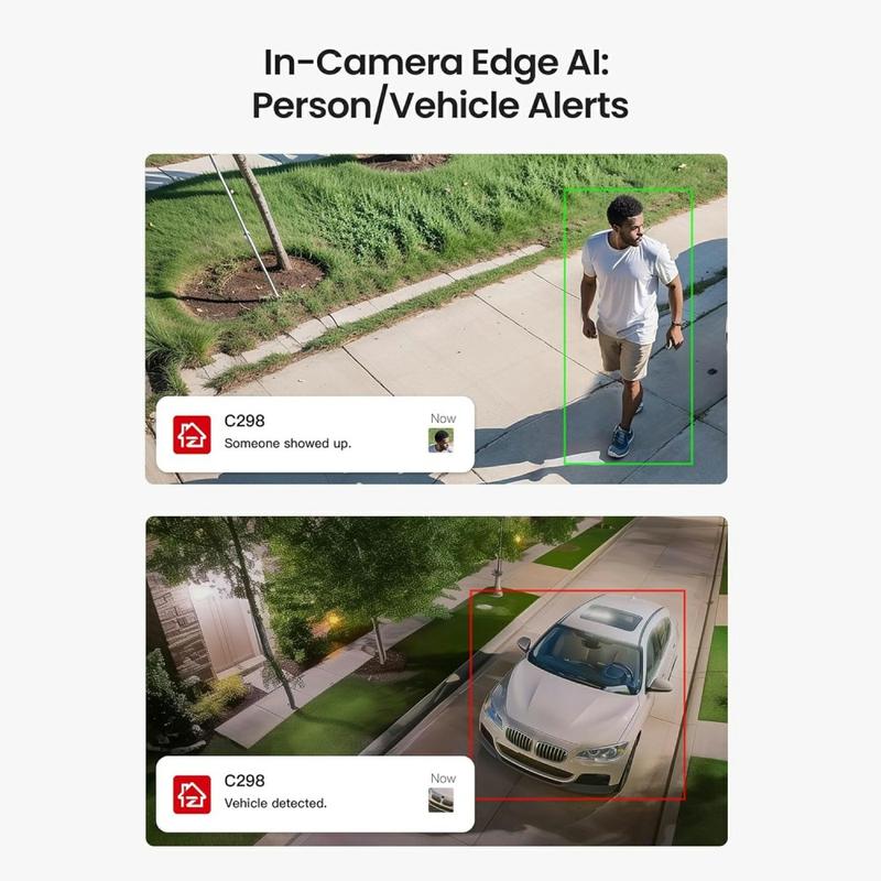 - KI-Menschen- und Fahrzeugerkennung mit intelligenter automatischer Verfolgung und Push-Warnungen - weniger Fehlalarme durch Haustiere und Regen