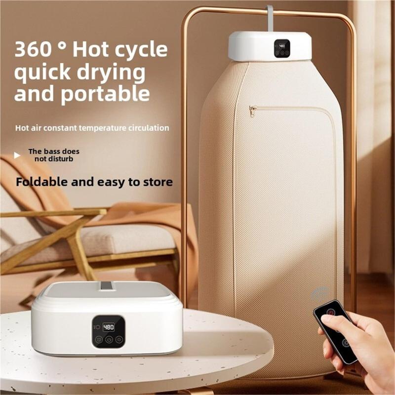 Faltbarer Wäschetrockner mit 360°-Heißluftumwälzung - 60°C Trocknung + UV-Blaulicht-Sterilisation, PTC-Keramik-Heizung, 10 kg Füllmenge, Timer 1-8 h, Fernbedienung