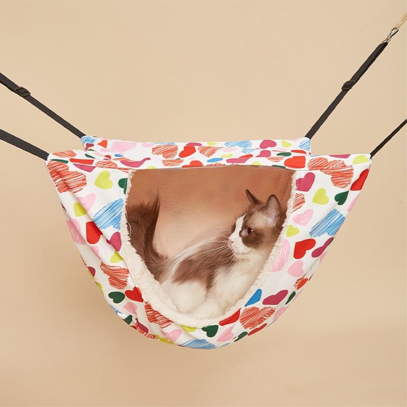 Zweischichtige hängende Hängematte für Katzen - Herzen